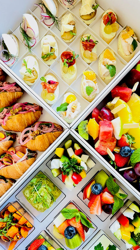 Cada set llega perfectamente presentado y listo para servir, transformando tu mesa en una celebración digna de una foto en cuestión de minutos. Sin bandejas, sin platos, sin desorden — solo comida deliciosa, presentación elegante y tiempo para realmente disfrutar de tu propia fiesta.