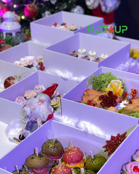 Esta temporada festiva, evita el estrés de cocinar y deja que Hot🔥Up® lleve la magia directamente a tu mesa. Nuestras cajas, bellamente preparadas, están llenas de todo lo que tus invitados van a disfrutar — croissants recién horneados, wraps llenos de sabor, sándwiches gourmet en baguette, ensaladas vibrantes y mini burgers jugosas hechas con ingredientes de primera calidad.