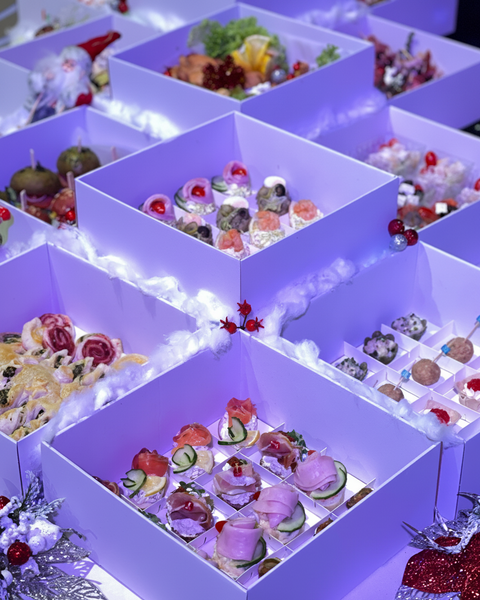 Cada set llega perfectamente presentado y listo para servir, transformando tu celebración en un festín elegante en cuestión de minutos. Sin bandejas, sin platos, sin desorden — solo sabores festivos, una presentación impresionante y una experiencia realmente sin esfuerzo.